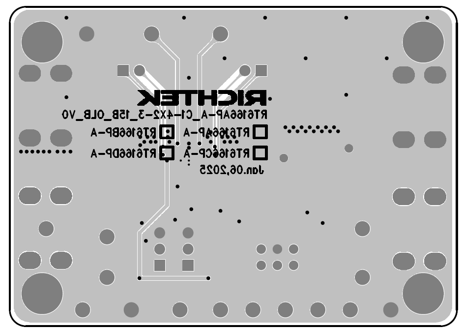 Figure 1 to Figure 4 are RT6166DP-A’s evaluation board layout. This board size is 70mm x 50mm and is constructed on four-layer PCB.
