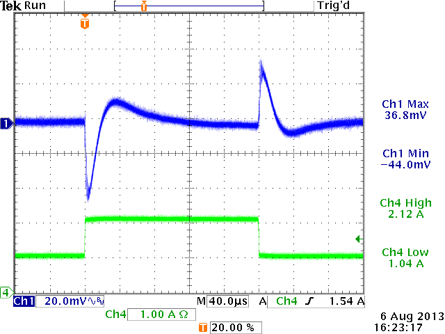PCB traces etc). Increasing the step-load rise times to ~ 500nsec will reduce