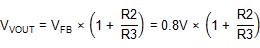 Set the output voltage with the resistive divider (R2, R3) between VOUT and GND with the midpoint connected to FB. The output voltage can be set by the following equation :