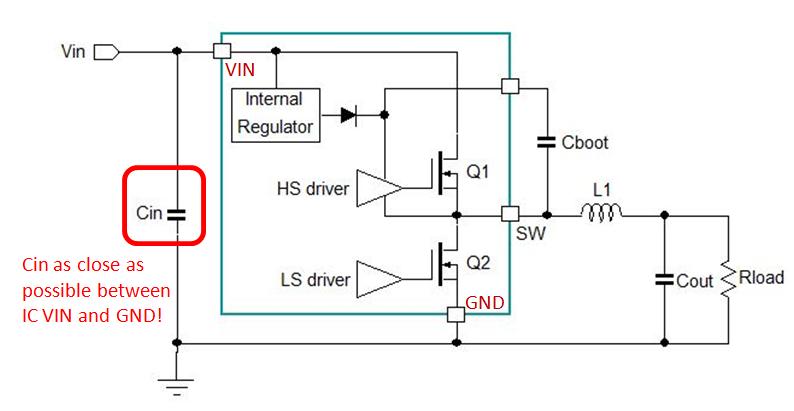在開關模式降壓轉換器中,電磁干擾(EMI)主要是由於高頻電流在電路迴路中流動所引起的。