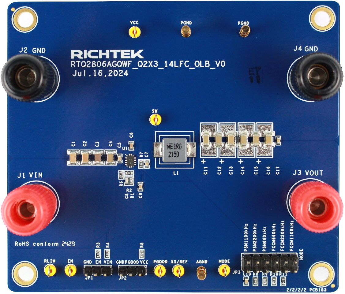 A summary of the RTQ2806A Evaluation Board performance specification is provided in Table 1. The ambient temperature is 25°C.