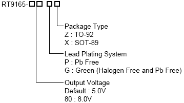 The RT9165 is a positive low dropout regulator designed for applications requiring low dropout performance at full rated current. The device is available in fixed output voltage of 5.0V or 8.0V. The RT9165 provides excellent regulation over line, load, and temperature variations.The other features include low dropout performance at a maximum of 1.3V at 150mA, fast transient response, internal current limiting, and thermal shutdown protection of the output devices. The RT9165 is a three-terminal regulator compatible with industrial LM78L05/L08 and available in surface mount SOT-89 package.